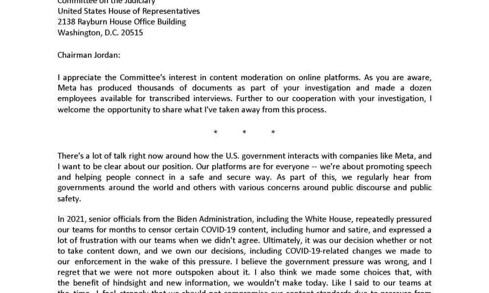 So, Meta CEO Mark Zuckerberg just dropped a bombshell. He’s calling out the Biden-Harris regime by name, saying they were all up in his DMs, pressuring his team to censor stuff— about COVID, about the election, and they wanted all sorts of content, including satire and humor, ripped off the internet. LAUGHING ISN’T ALLOWED IF IT DOESN’T HELP BIDEN-HARRIS.